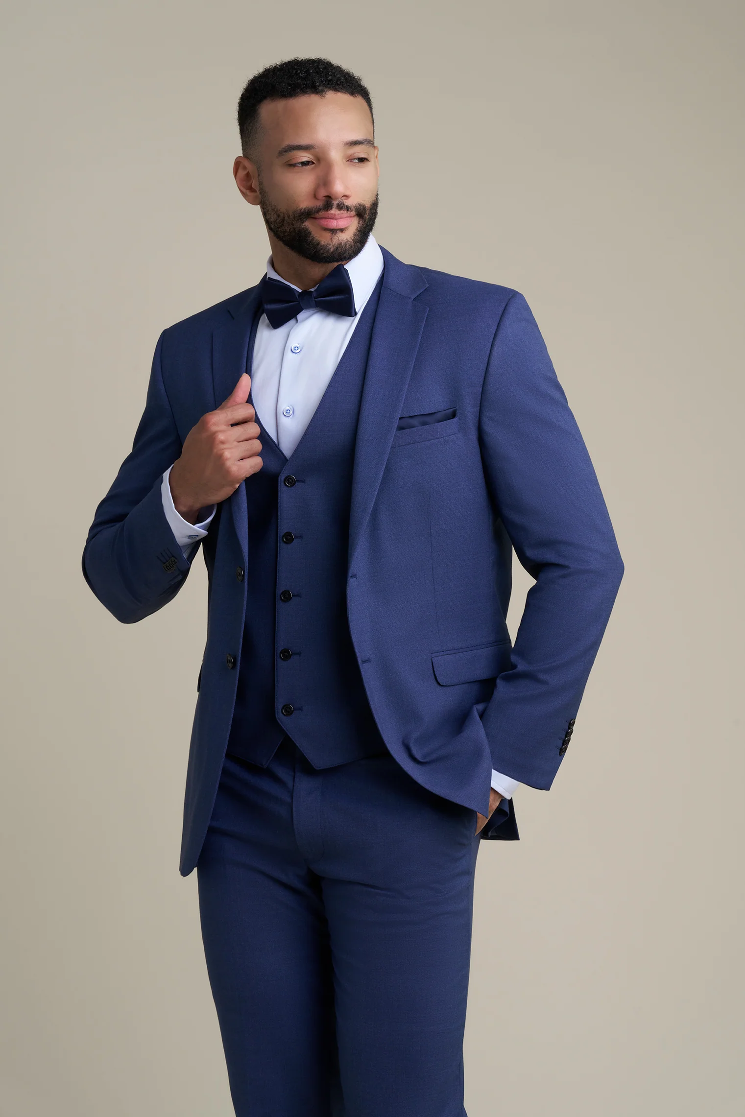 Many gentlemen wear blue suits at formal events because they look classy and exude a subtle charm. The blue notch lapel suit has a slim-cut design to accentuate the natural silhouette of the body, creating a sleek and sophisticated look. This modern design adds an extra touch of style with its clean lines and minimalistic aesthetic. Find a retailer in your area to purchase this suit for your next big event.