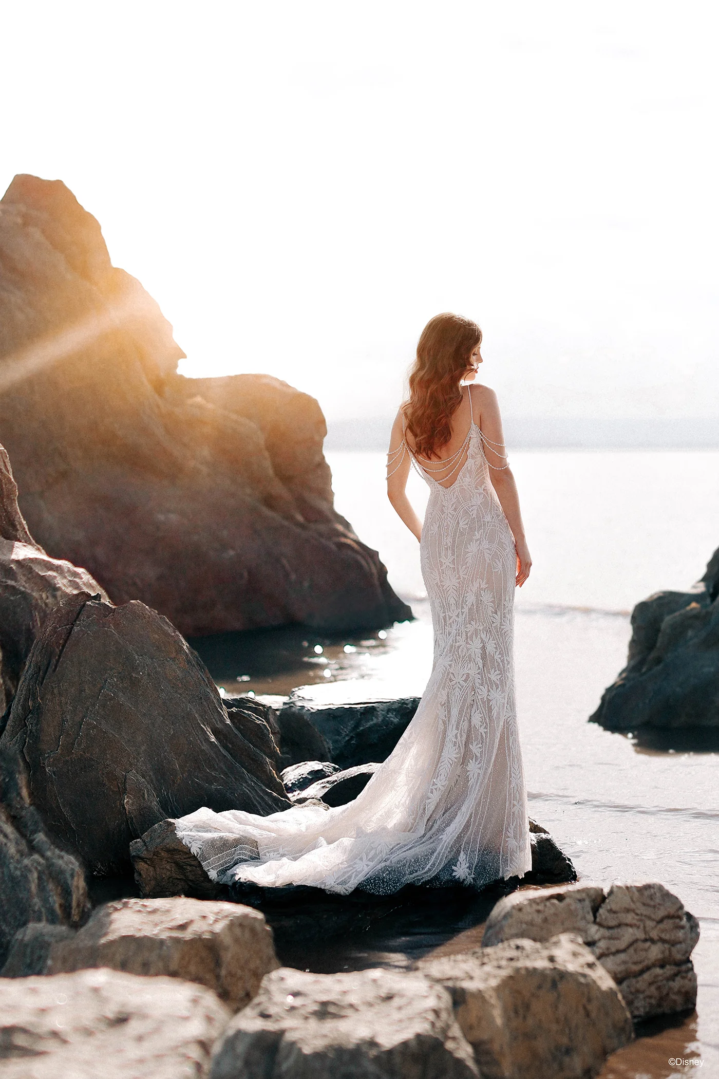Beautiful, regal, and radiant, the DP350 Ariel dress sparkles like the morning sun illuminating the ocean waves. This Ariel Platinum gown is a beauty of a sheath silhouette with ocean-inspired pearlescent off-shoulder drape, accented by a sweetheart neckline and v-back.